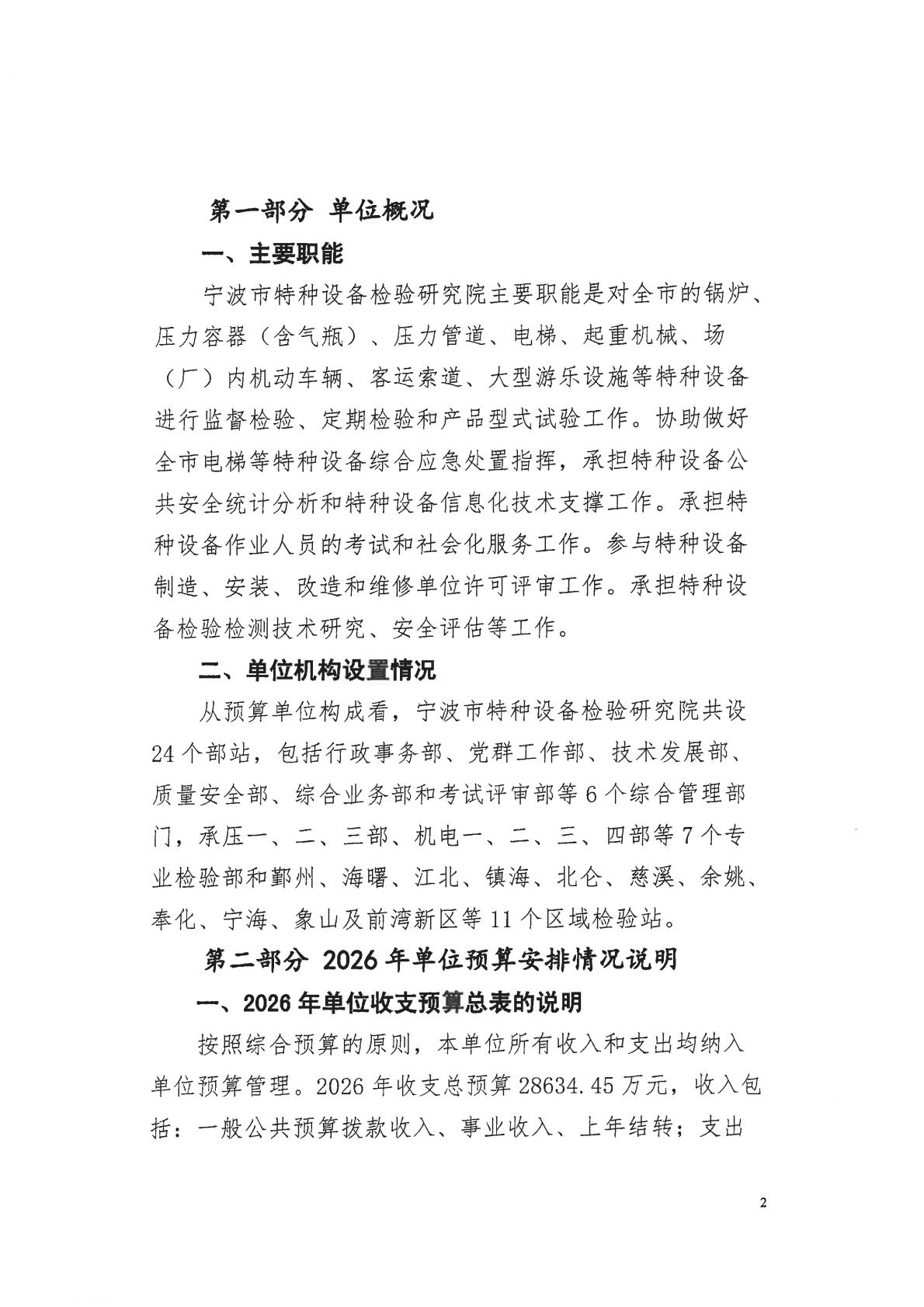 宁波市特种设备检验研究院2026年单位预算公开文字说明